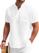 - 【CLOTHING MATCH】: The linen stylish slim fit henley shirts could be easy to match with dress pants, slacks, chinos, jeans or shorts to round out your look. Men’s short sleeve linen shirt can make you feel cool and comfortable in hot summer.