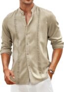 - Stylish Design: This casual shirt Fearturing Long Sleeve, Button Down Closure, Band Collar, Vertical Pleats. High quality stitch. Nice front pattern. Keep cool and composed when the temps surge in this casual shirt cleanly finished with a band collar.
